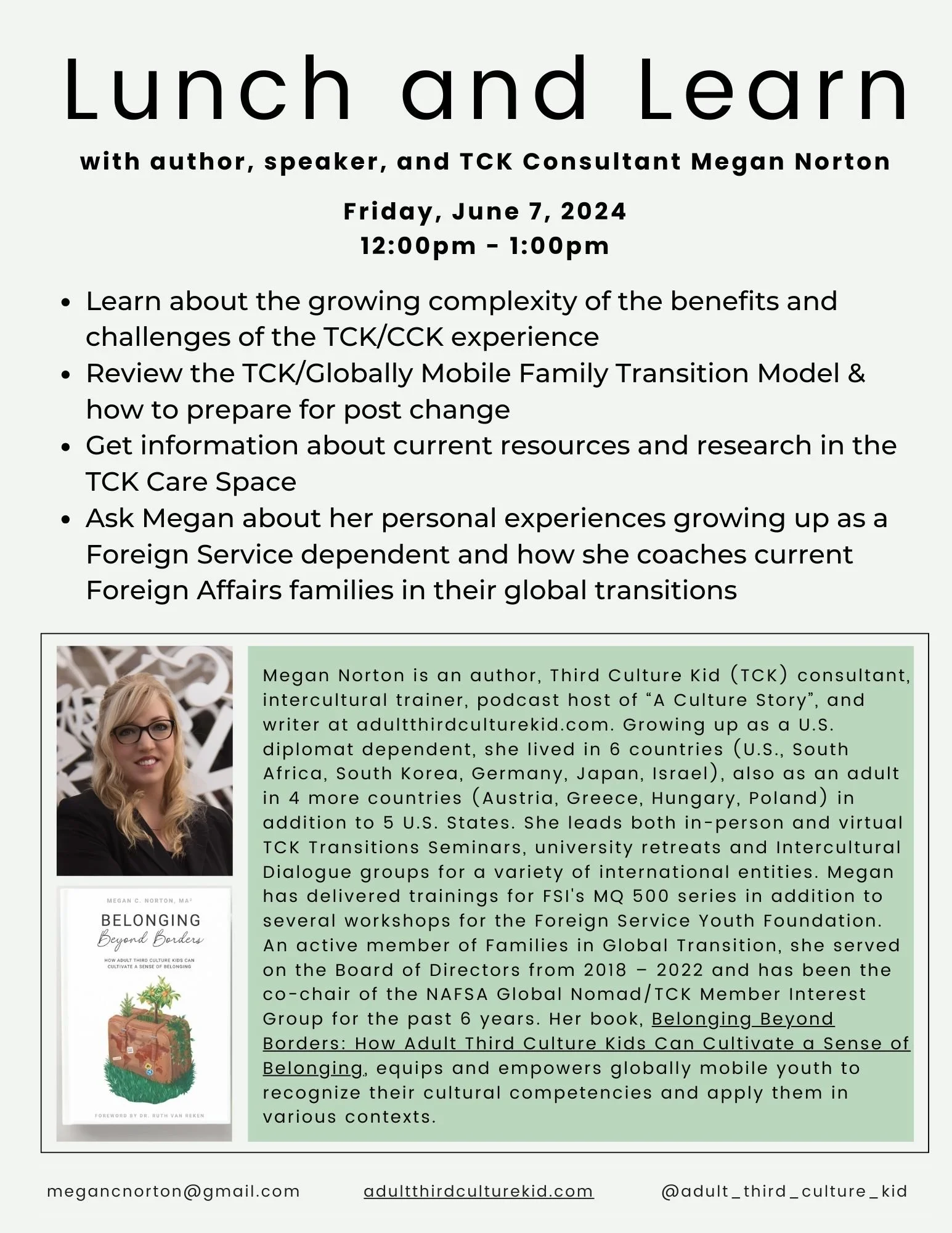 Megan C. Norton-Newbanks (MS, MA): Intercultural Communication Trainer and Third Culture Kid (TCK) Consultant